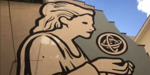 Il murale, realizzato nel 2018 dalla street artist e scenografa MP5, raffigura Ipazia