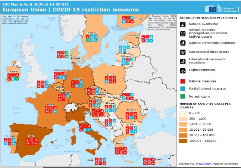 La figura qui in alto è esemplificativa dell’Unione Europea al tempo del Coronavirus: ogni Paese ha preso, in maniera unilaterale, misure di carattere nazionale.